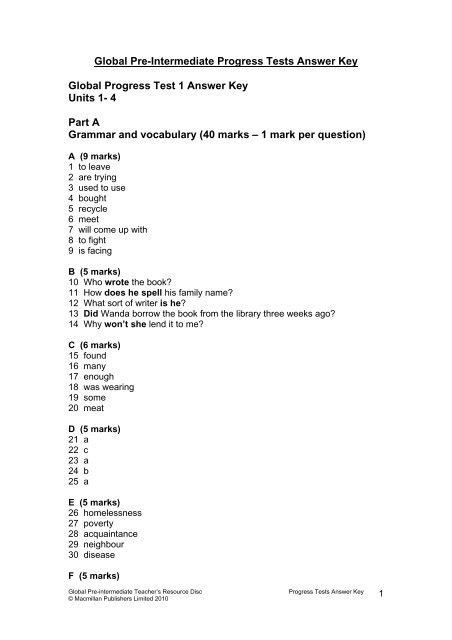 Download PDF Online GLOBAL ANSWERS KEY PROGRESS TESTS B INTERMEDIATE Tutorial Free Reading PDF